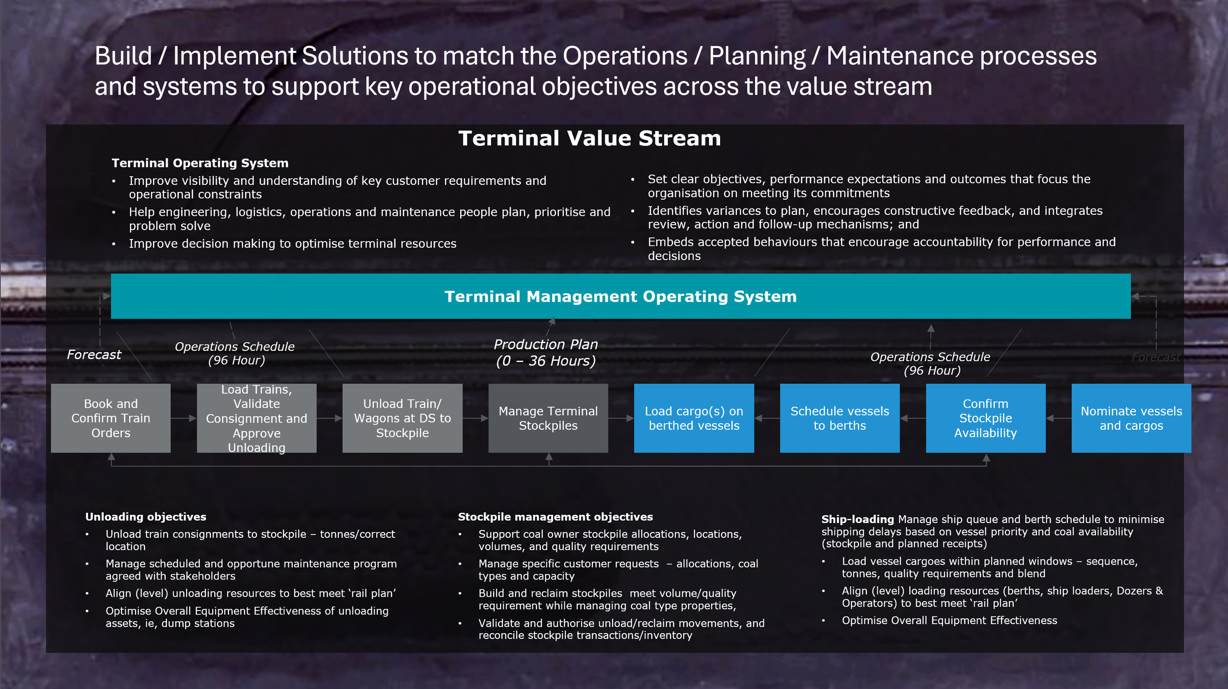 Following my analysis of the entire Central Queensland bulk supply and export chain, I architected and delivered a whole-of-business Digital Twin managing $12B in export products covering logistics, operations and maintenance across the $2.4B operational assets.